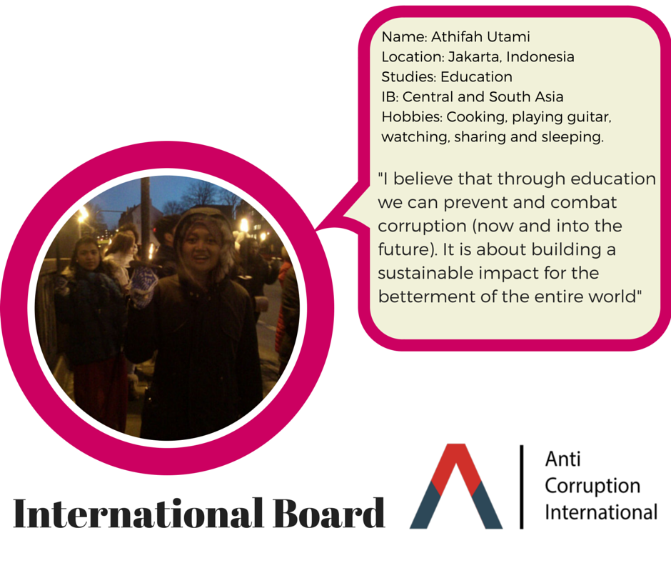 - A legal representative for Central and South Asia in Anti Corruption International and be part ofYouth Network member under Transparency International Indonesia.